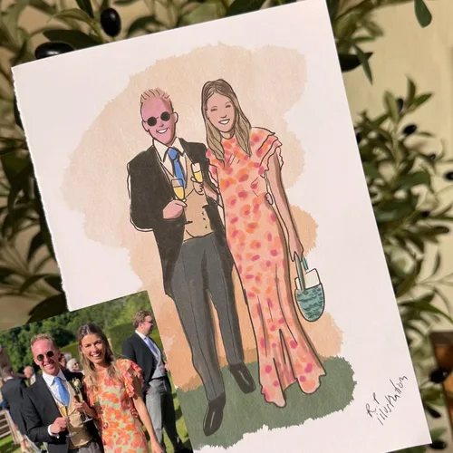 Find a wedding illustrator in England to bring your love story, stationery, and favourite photos to life. Browse verified illustrators, compare styles and starting prices, and enquire with the artists who feel right for your day.
