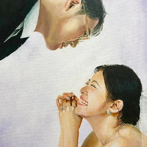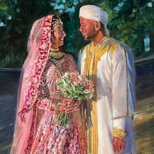 Before you enquire, spend time in each artist's portfolio looking for paintings that feel like the result you want. Look at how they handle skin tones, light, and background detail. Read the reviews from other couples to understand what the experience of working with them is actually like.