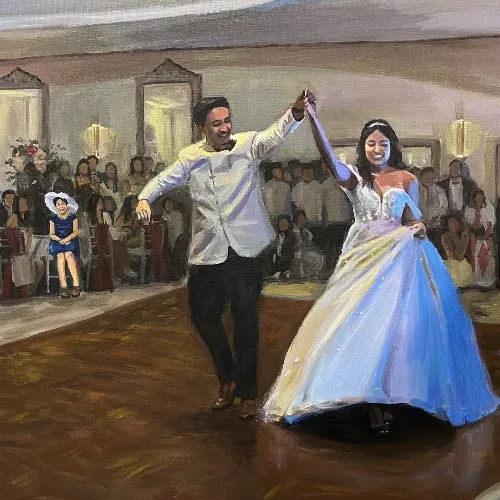 "We were both moved to tears. Thank you so much for the talent and hard work you put into this painting for us! We are so grateful you made the efforts to come out to our wedding to..."