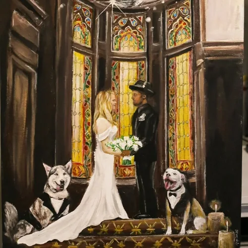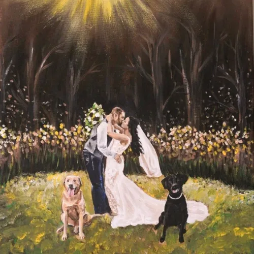 And if you didn’t book a live painter in time, many artists also offer photo-based commissions after the wedding (availability varies).